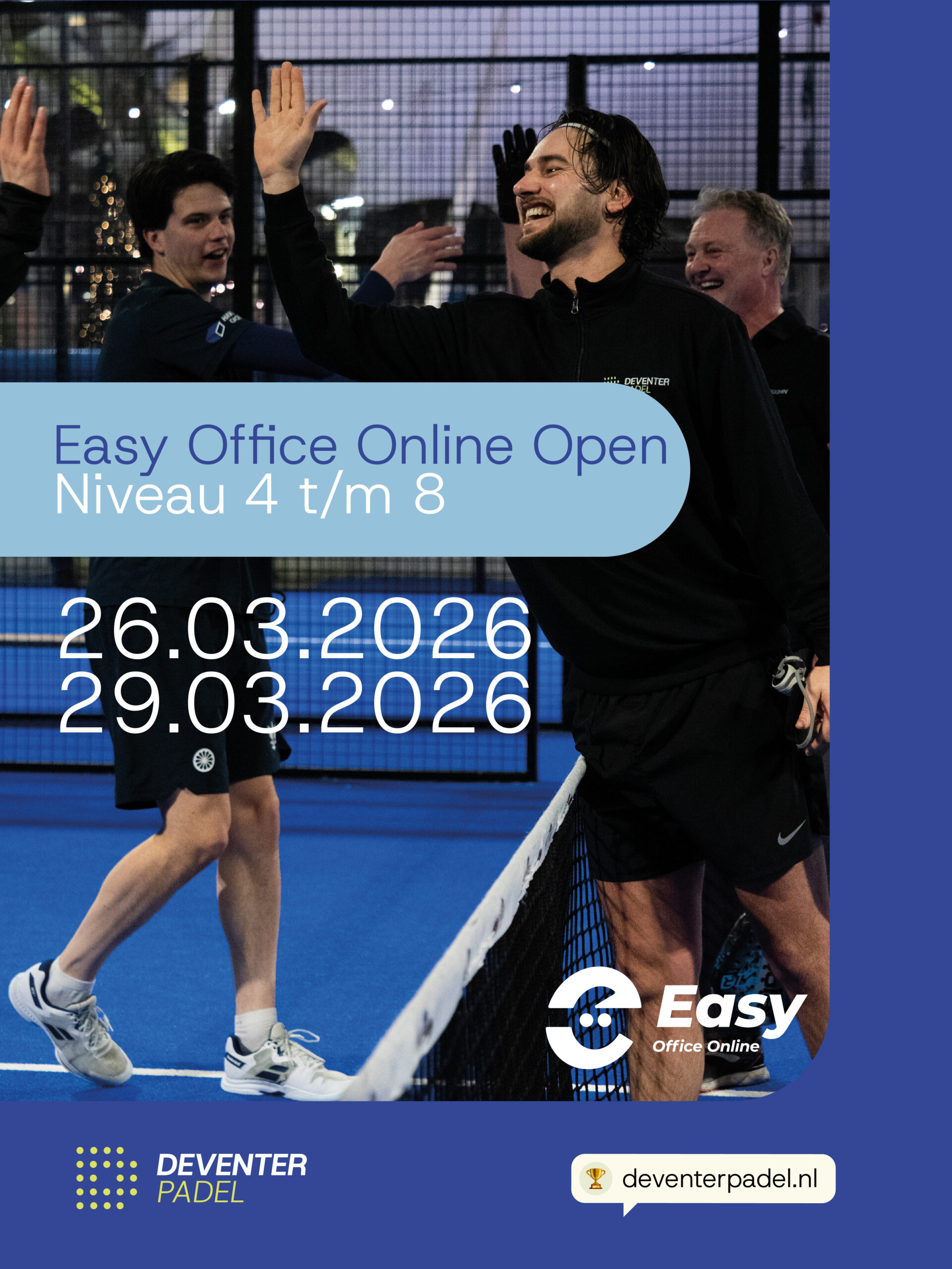 Van donderdag 26 maart t/m zondag 29 maart 2026 trappen we het nieuwe padelseizoen af met het Easy Office Online