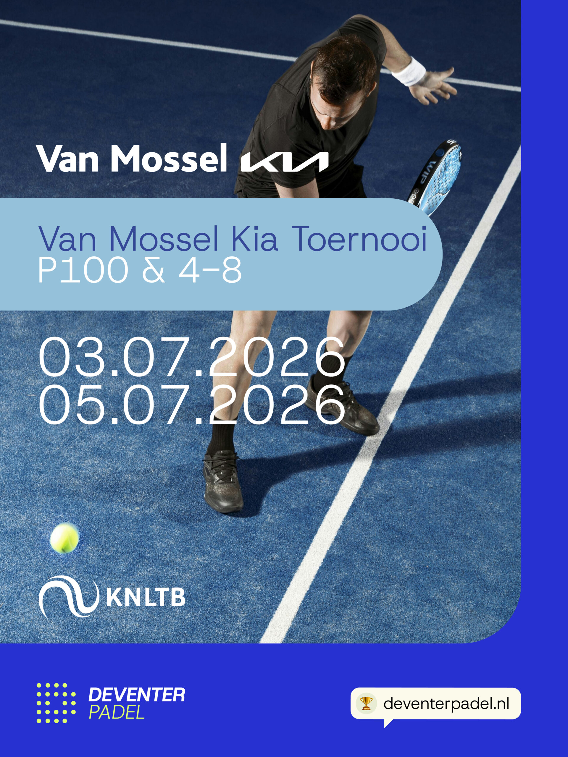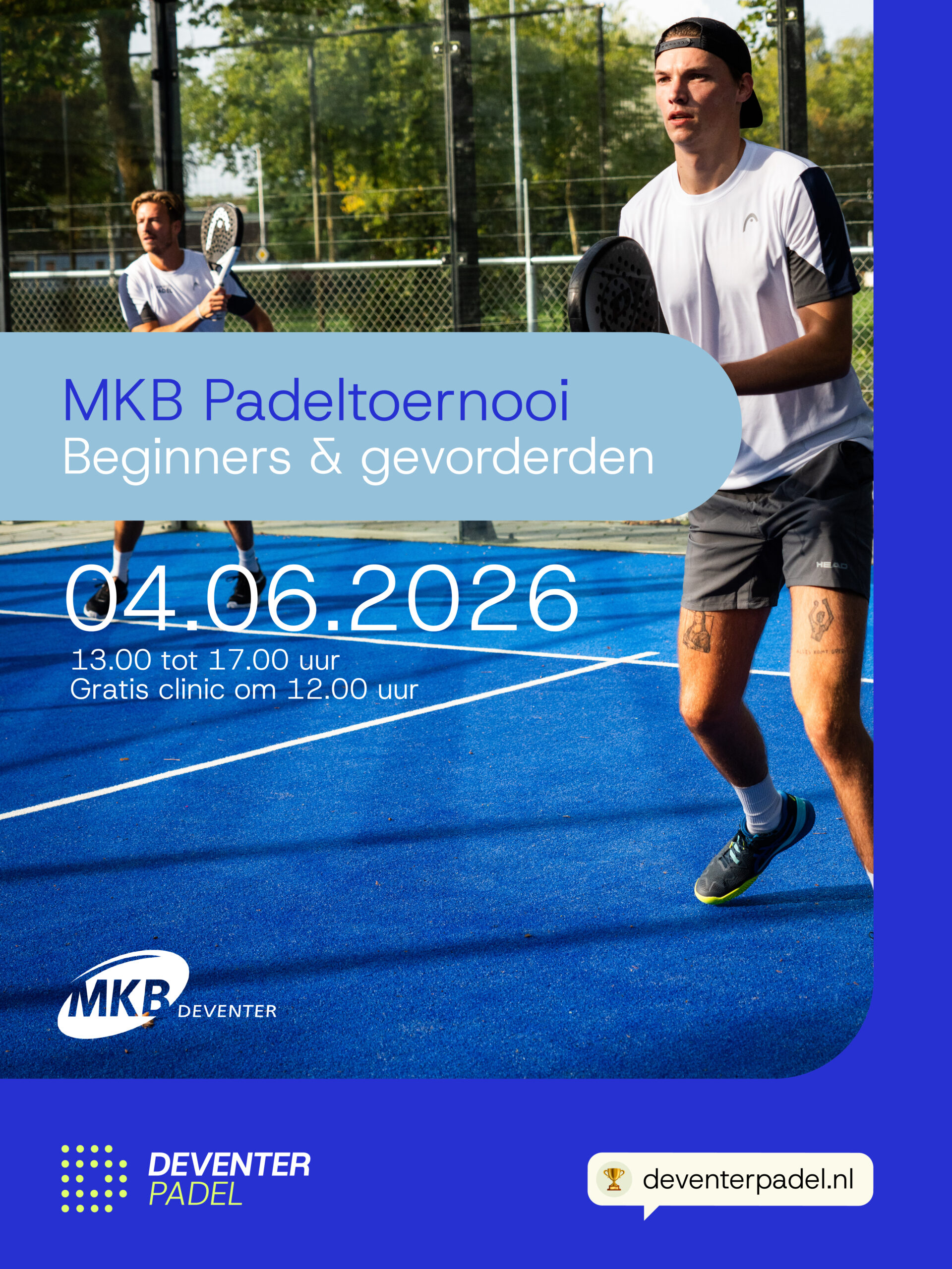 Datum: 04-06-2026 Tijd: 12:00 – 17:00 Locatie: Deventer Padel – Borgele, Borgelerdijk 1 in Deventer MKB Deventer Padeltoernooi op 4